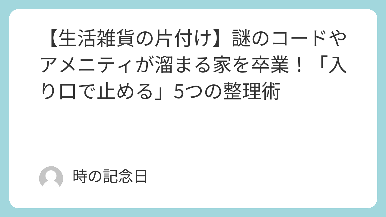 【生活雑貨の片付け】謎のコードやアメニティが溜まる家を卒業!「入り口で止める」5つの整理術