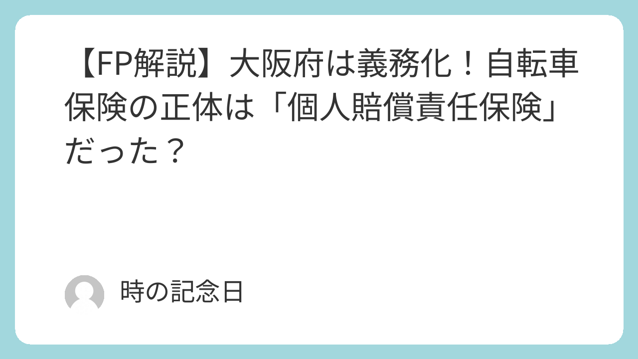 【FP解説】大阪府は義務化!自転車保険の正体は「個人賠償責任保険」だった?