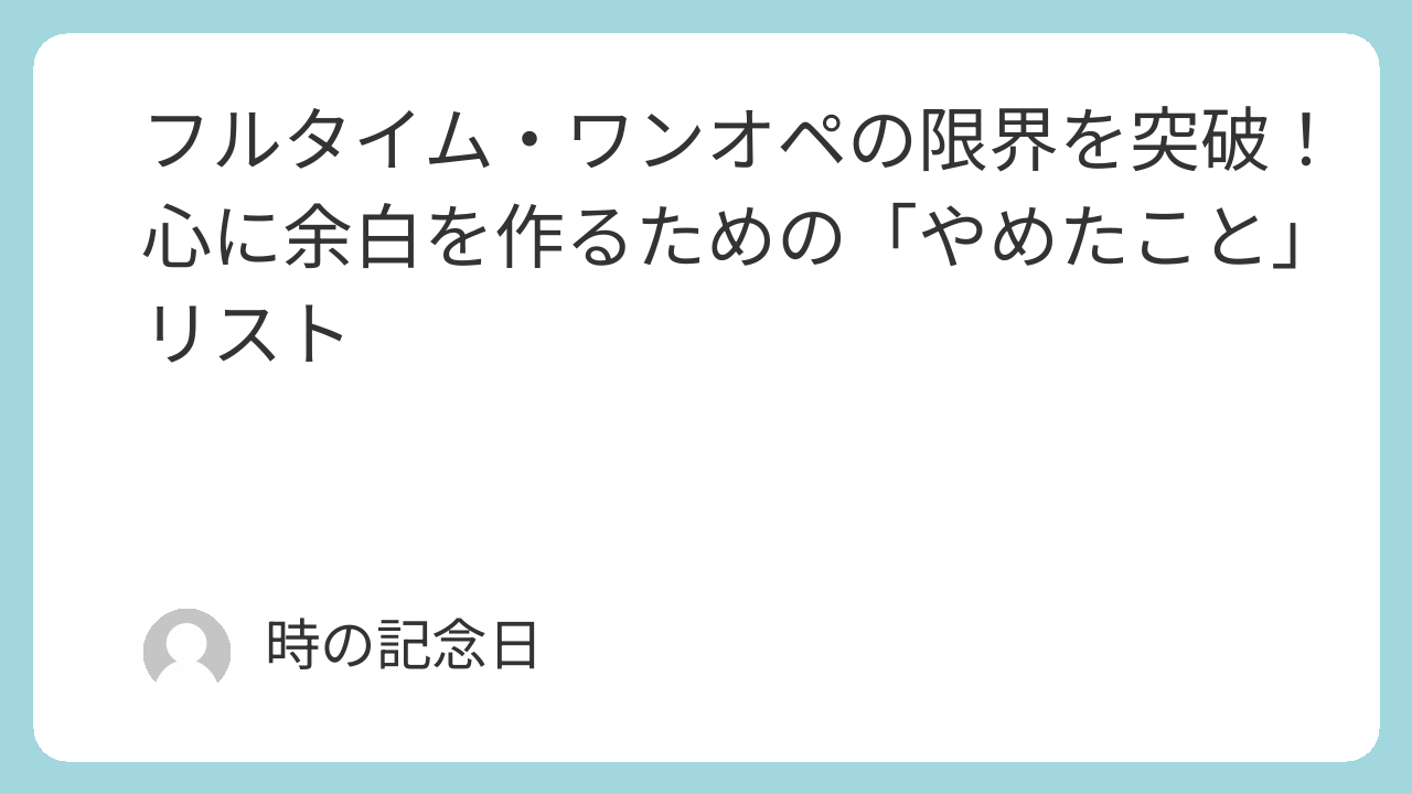 仕事はフルタイム、家事はワンオペ……。毎日24時間じゃ全然足りない!どうすれば心に「余白」なんて作れるの?