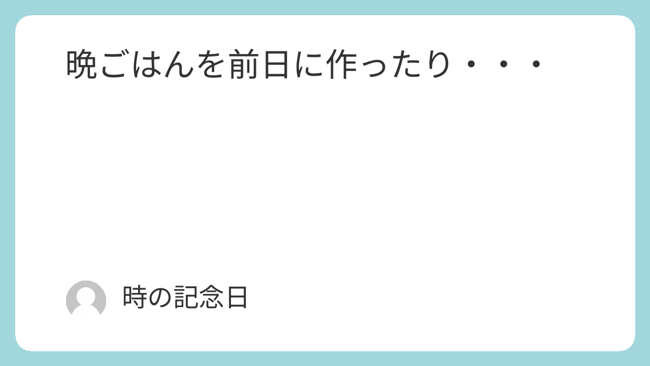 - 帰宅後に晩ごはんができていると思うと心に余裕ができる