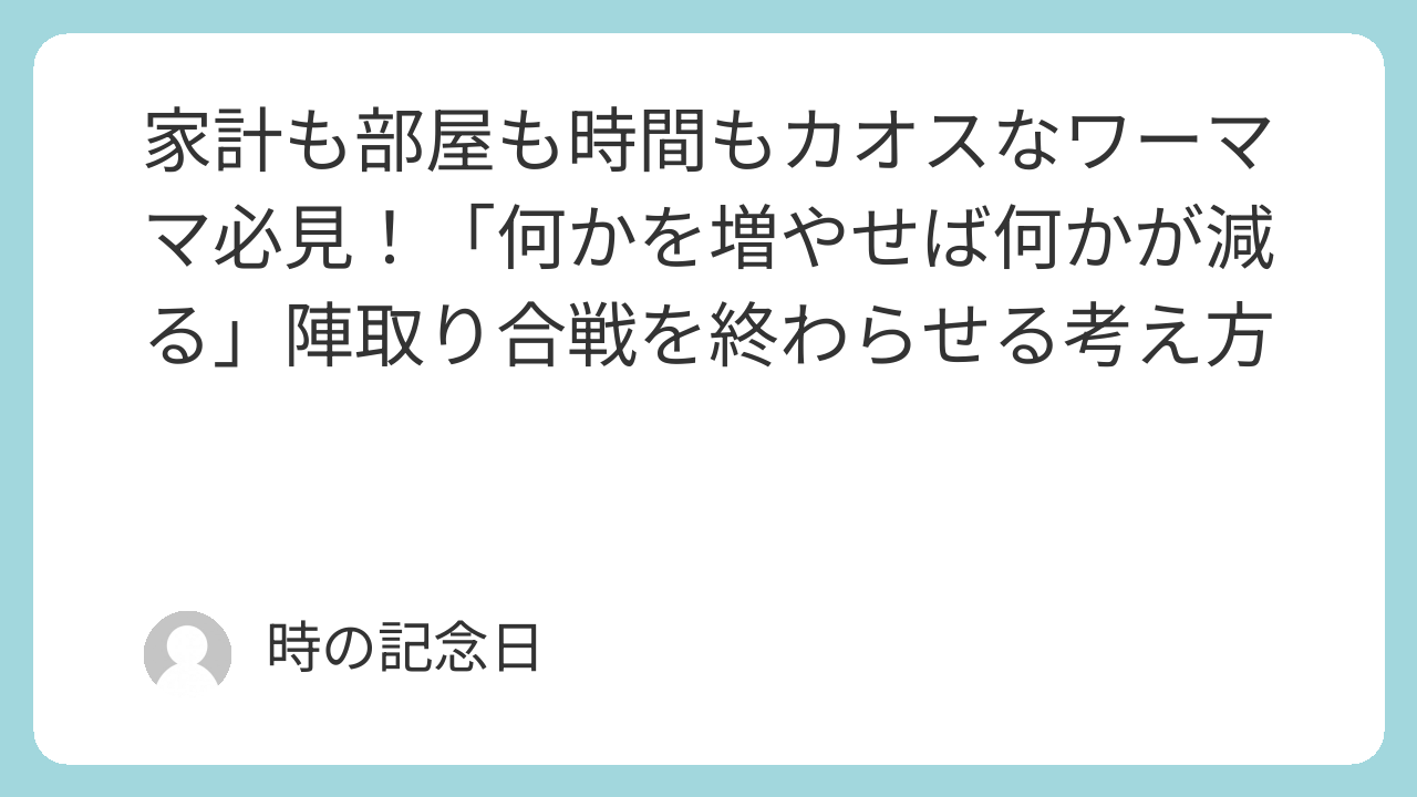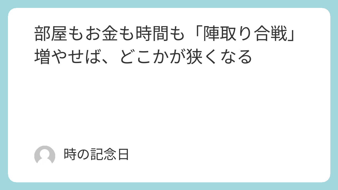 どこかを広げるとどこかが狭くなる。部屋もお金も時間も「陣取り合戦」です。
